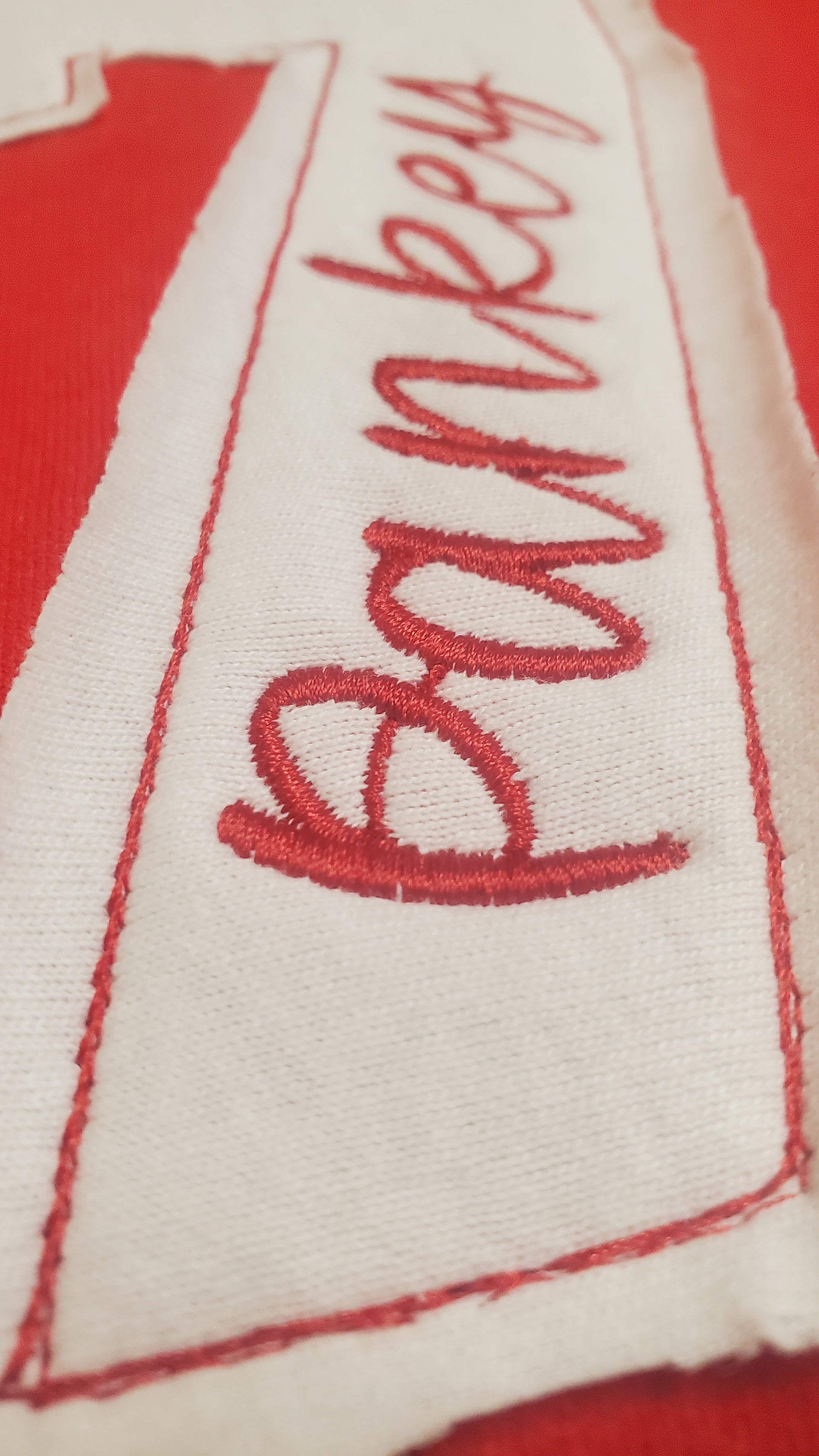 Personalize each shirt with a name of your team or Number of your player. Soft cotton material for the applique is sewn and hand cut for that Personal touch.