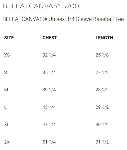Available in Unisex Adult T-Shirt, Youth T-Shirt and Adult Unisex 3/4 Sleeve
